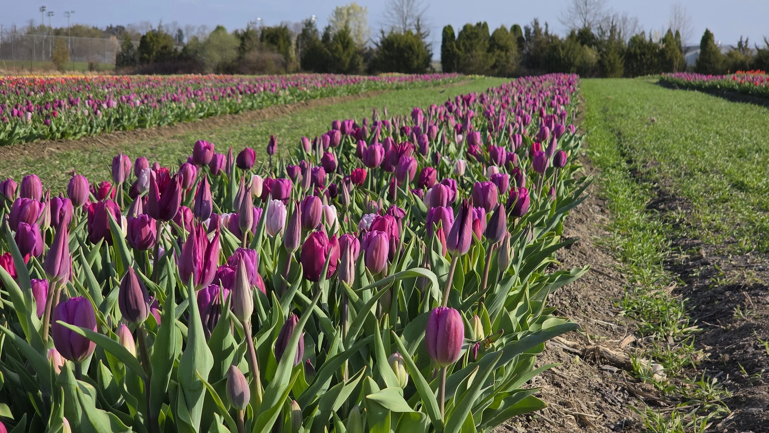 Early tulips! We have a handful of varieties in full bloom. Hundreds of thousands of tulips budded up and ready to pop with the warmer weather the next few days.